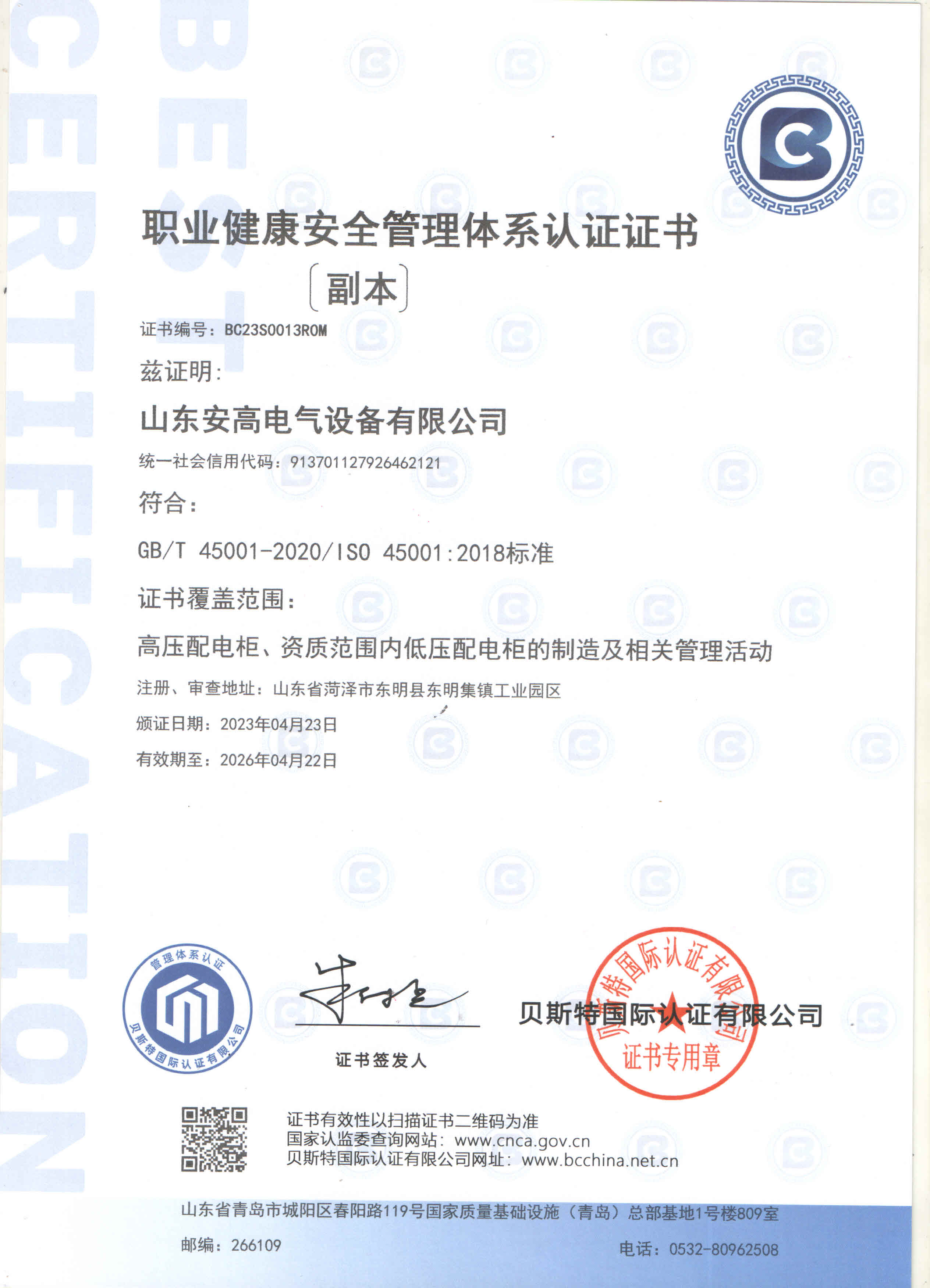 公司通過“IS09001質量管理體系認證”、“GB/T 14001環境管理體系認證”、“GB/T 45001職業健康安全管理體系認證”三大體系認證,榮獲國家級“高新技術企業”、國家級“科技型中小企業”、“山東省專精特新中小企業”、“企業技術中心”、“山東知名品牌”等榮譽稱號;并與國內外知名高校建立長期的戰略合作關系,加強技術研發與項目開發。